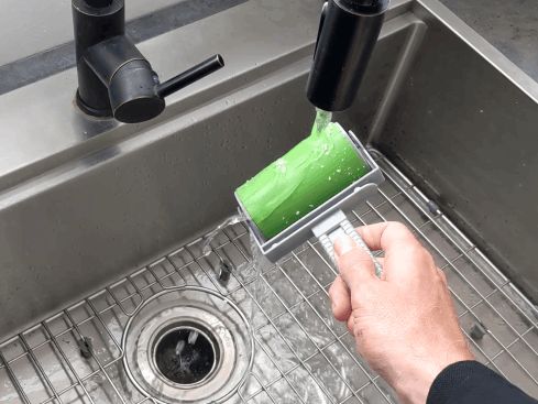 When Go Sticky is full, it need to be washed in order to be reused. Simply rinse it in your sink with warm water. Washing it with dish soap also ensures your roller will stay clean and sticky forever!